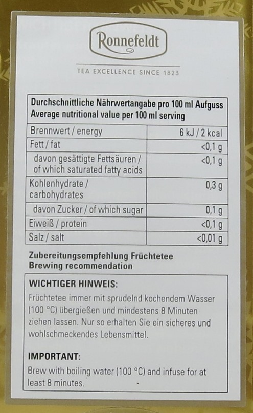 Aromatisierter Früchtetee mit Apfel-Punschgeschmack. Winterkreation mit weihnachtlichen Gewürzen und fruchtigem Apfel.