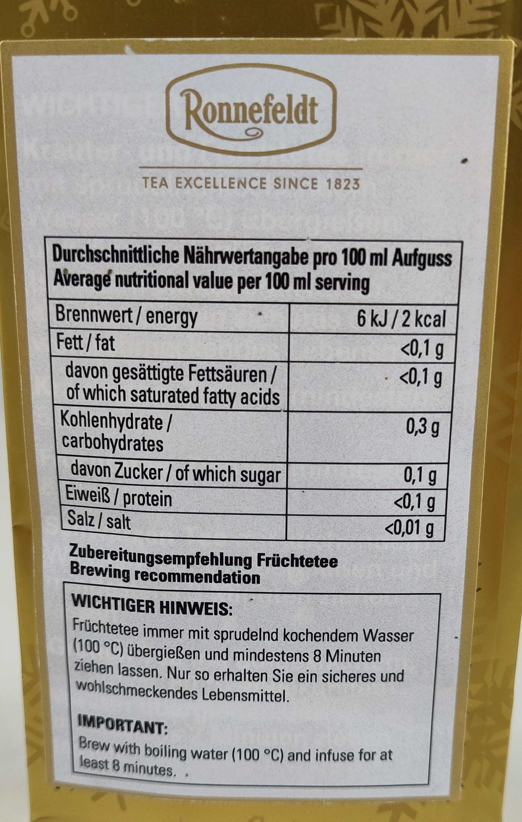 Aromatisierter Früchtetee mit Apfel-Vanille-Zimt Geschmack.